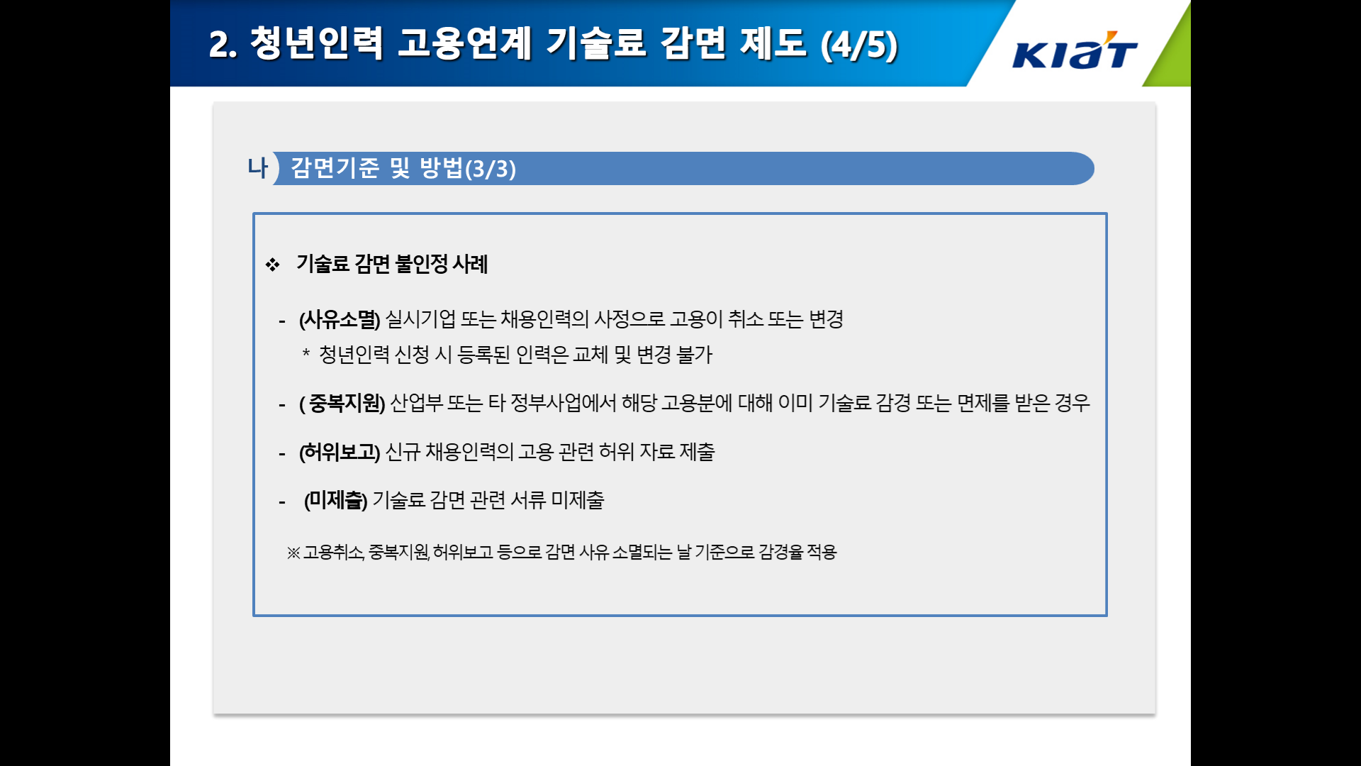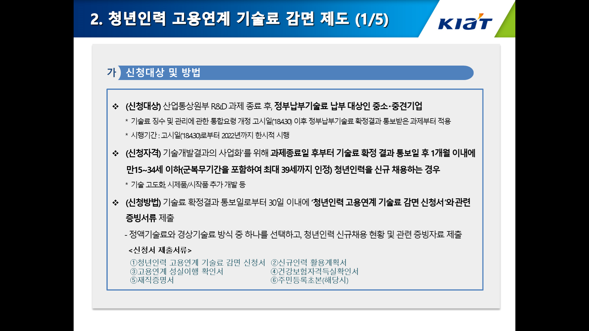 ※ 규정확인: 한국산업기술진흥원 사업관리시스템(www.k-pass.kr) 정보 → 사업관리규정 메뉴 및 법제처(www.moleg.go.kr) → 법령, 행정규칙